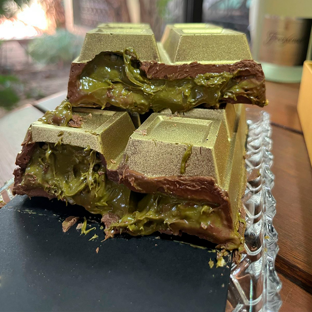 Descrição: O equilíbrio perfeito entre textura e sabor: um cremoso recheio de pistache doce envolve uma fina e crocante massa especial, criando uma explosão de sabores a cada mordida.